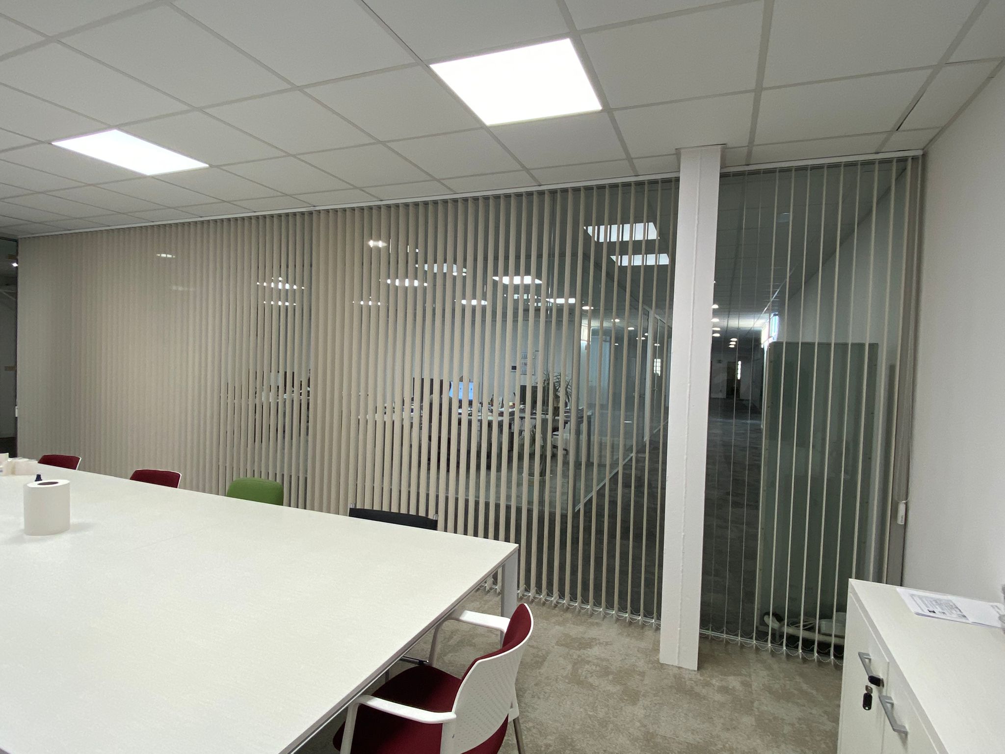 La presencia de pantallas, proyectores y sistemas de videoconferencia exige un control eficaz del deslumbramiento y de los reflejos sobre superficies digitales. Al mismo tiempo, la confidencialidad de la información requiere soluciones que permitan modular la privacidad sin renunciar a la entrada de luz natural.