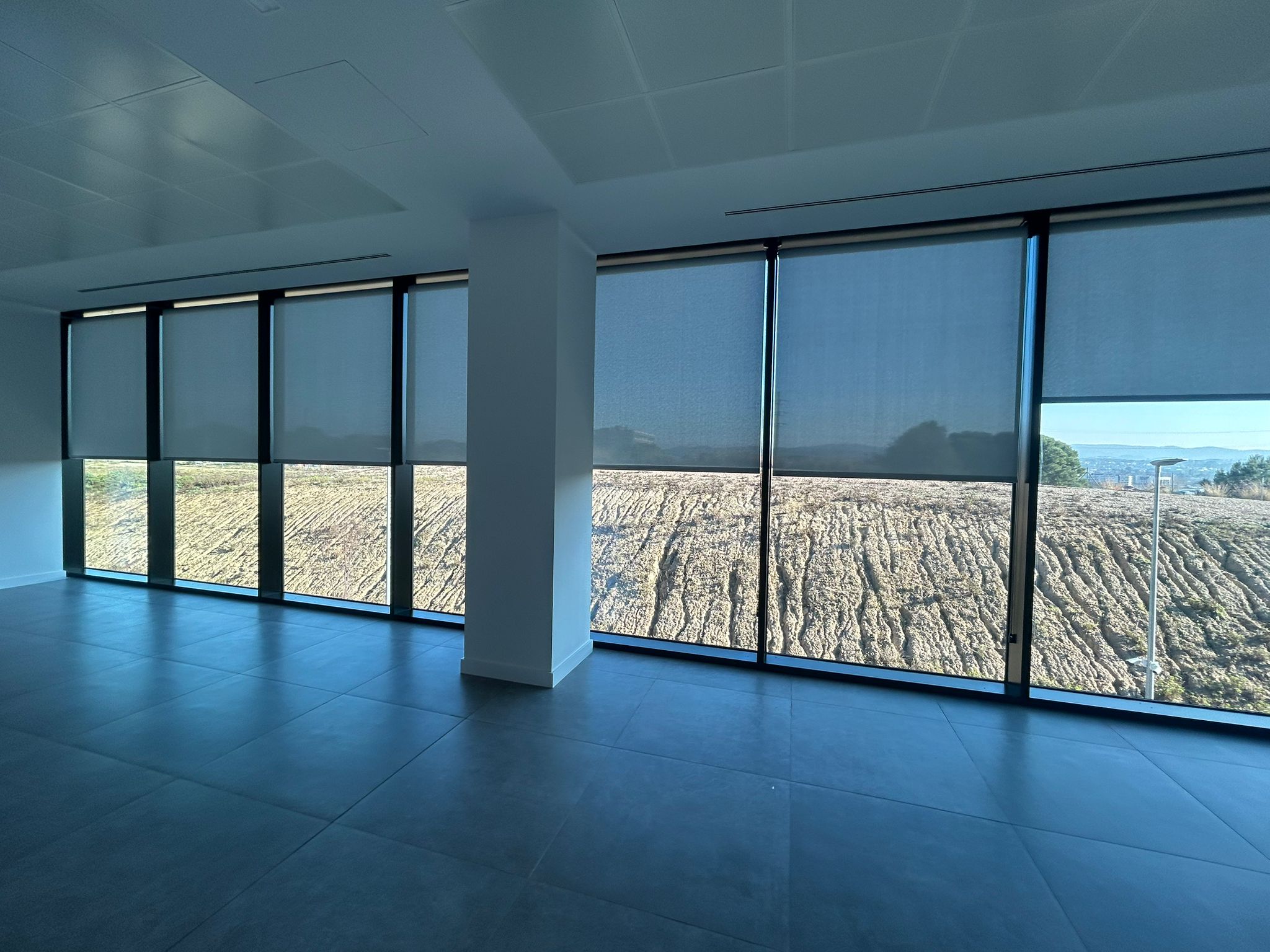 Sin embargo, esta transparencia necesita ser gestionada de forma muy eficiente. En este contexto, las cortinas técnicas no se conciben como un elemento accesorio, sino como sistemas activos de control solar que permiten transformar la envolvente interior del edificio en función del uso.